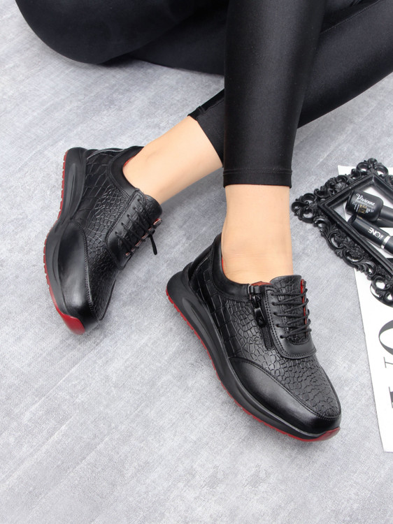 کتونی مشکی تمام چرم طبیعی مدل زیپی