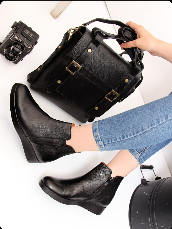 لژ کفش استاندارد و ۳ سانتیمتر ارتفاع دارد .این نیم بوت زیبا را میتوانید در سایز ۳۶ تا ۴۱ در رنگ مشکی از سایت آلیان چرم تهیه کنید .