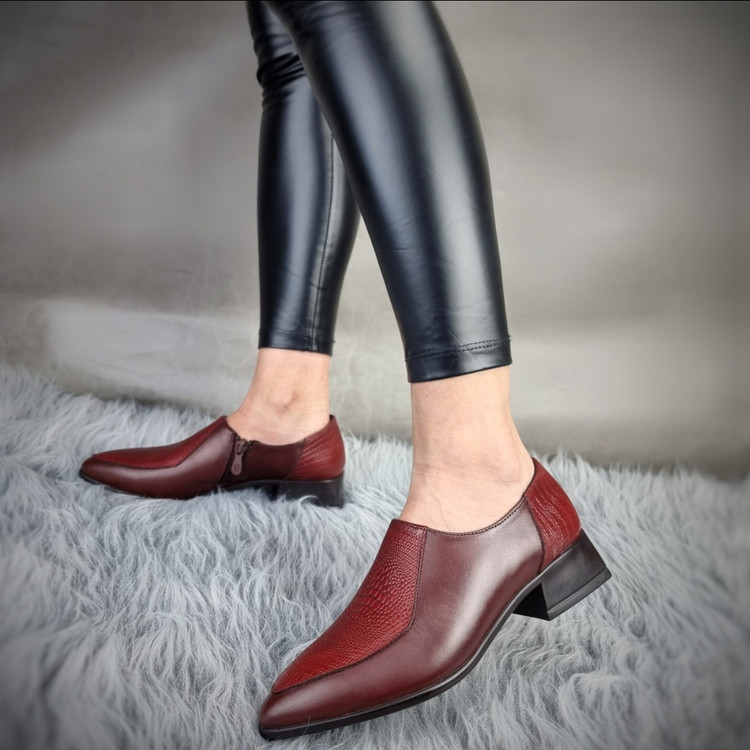 چرم بهطور طبیعی دارای براقیّت چشمگیری است و قرارگیری آن در قالبهای متنوع در طی تولید، باعث شیکتر شدن کفش میشود. کفش طبی چرم در مقایسه با انواع دیگر کفشهای زنانه، راحتتر تمیز میشود و زیبایی خود را از دست نخواهد داد.