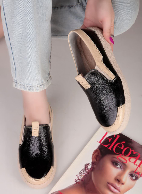 جنس رویه این کفش زنانه چرم طبیعی هست. چرم طبیعی فلوتر رنگی برای این کفش استفاده شده. طراحی رویه کفش با دو مدل چرم تضادی زیبا و شیک رو به وجود آورده که استایلی قشنگ به کفش بخشیده. این نوع چرم نرم هست و قابلیت نفوذ هوا داره؛ بنابراین پاها کاملاً راحت در یک فضای خشک و سلامت قرار می گیرن.