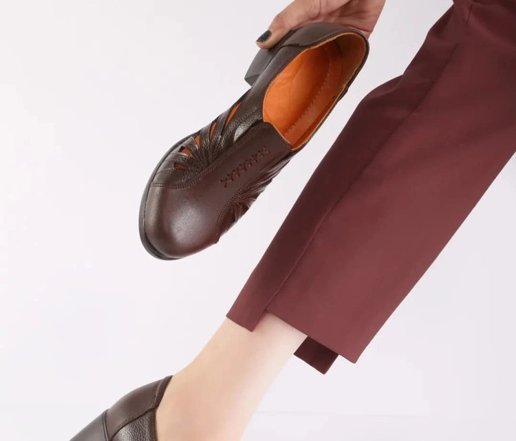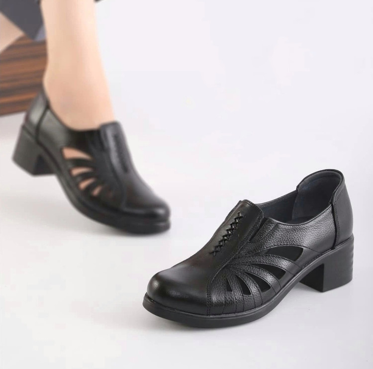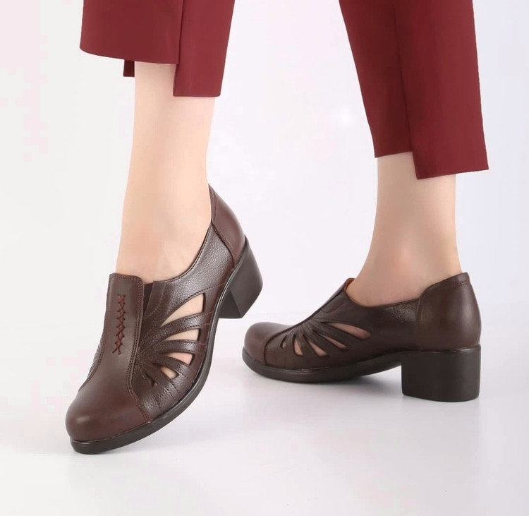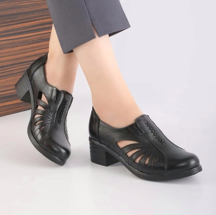 "کفش تابستانی زنانه چرم طبیعی با طراحی راحت و سبک – سایز ۳۶ تا ۴۱، پاشنه ۵ سانت"