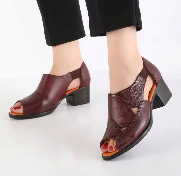 نقد و بررسی کفش تابستونی تمام چرم طبیعی گاوی (پاشنه ۵ سانت، زیره TPU، سایز ۳۶ تا ۴۱)