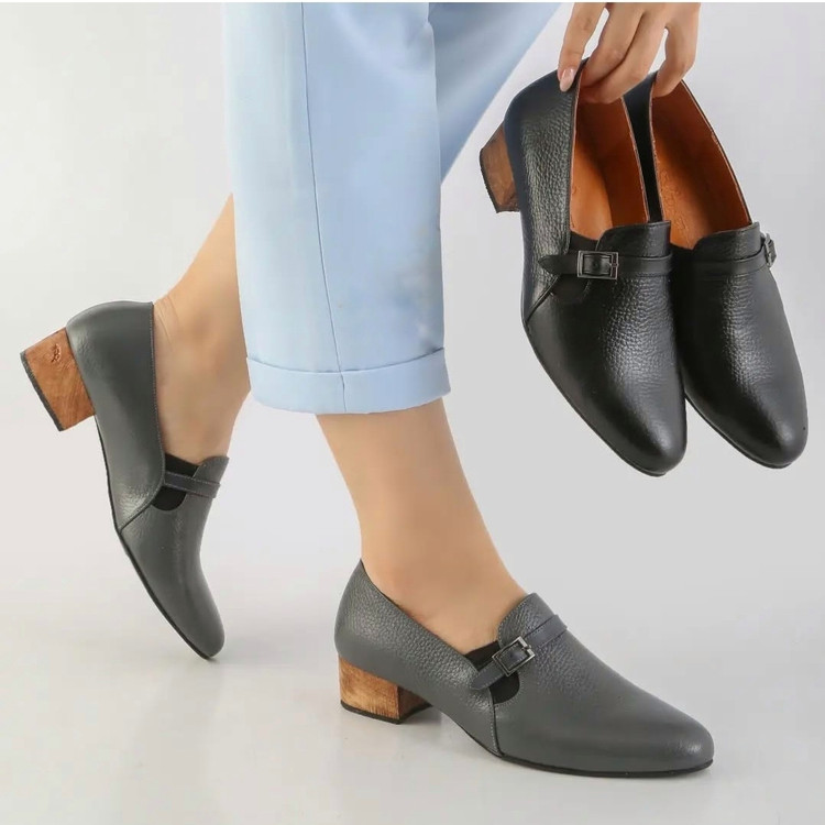 کفش تمام چرم طبیعی گاوی درجه یک طوسی و مشکی