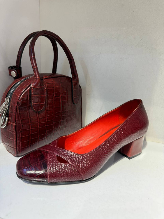 کفش طبی تمام چرم طبیعی گاوی مشکی و زرشکی
