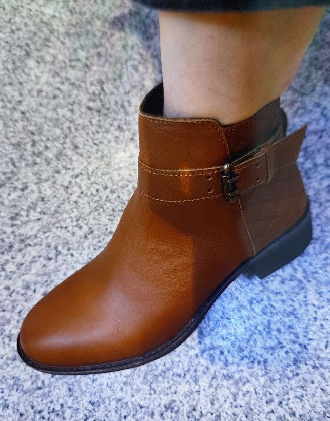نیمبوت زنانه تمام چرم طبیعی گاوی درجه یک رنگ عسلی