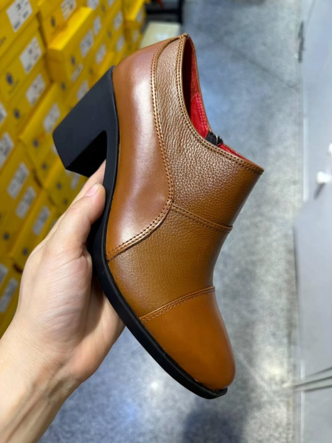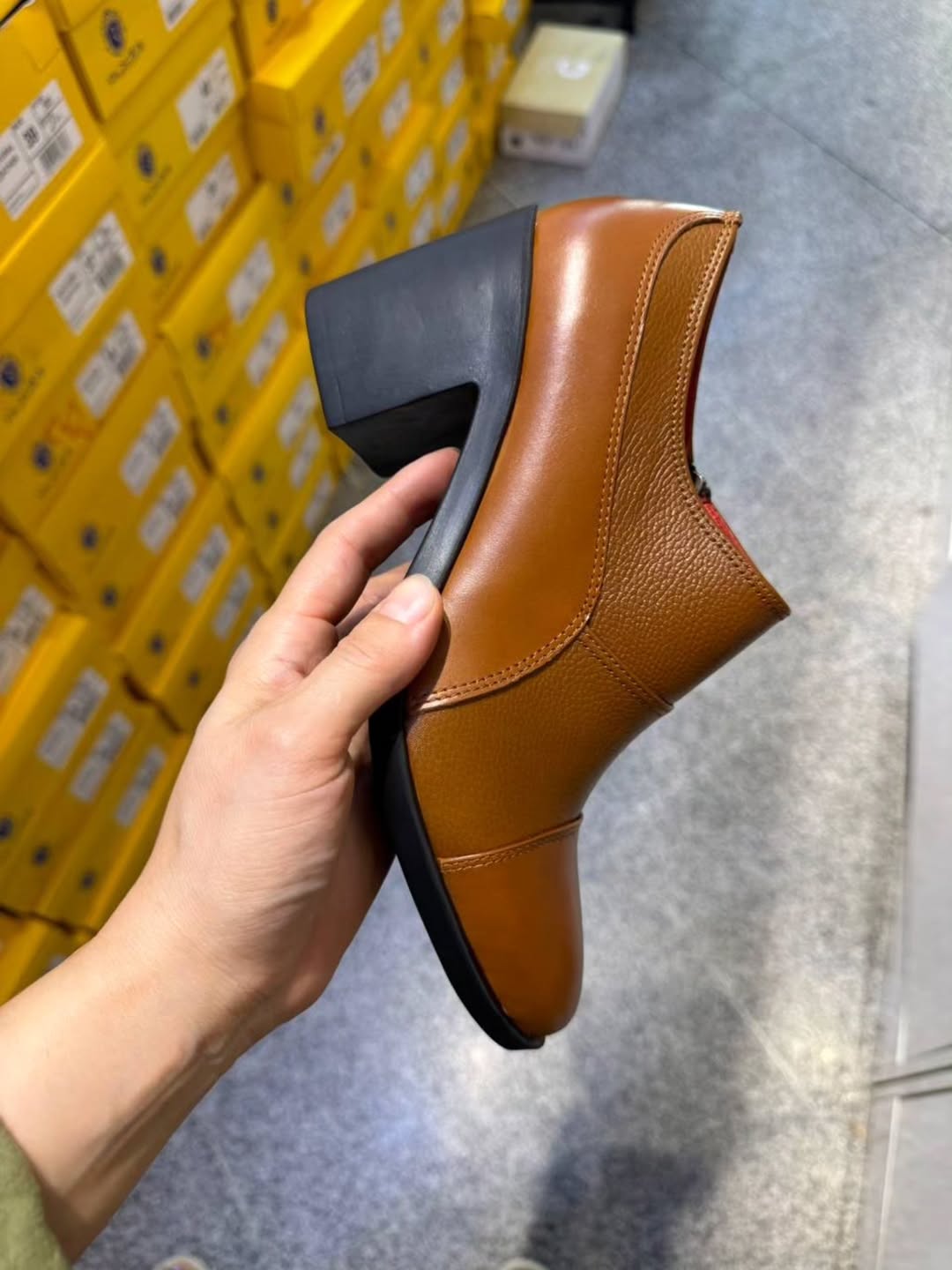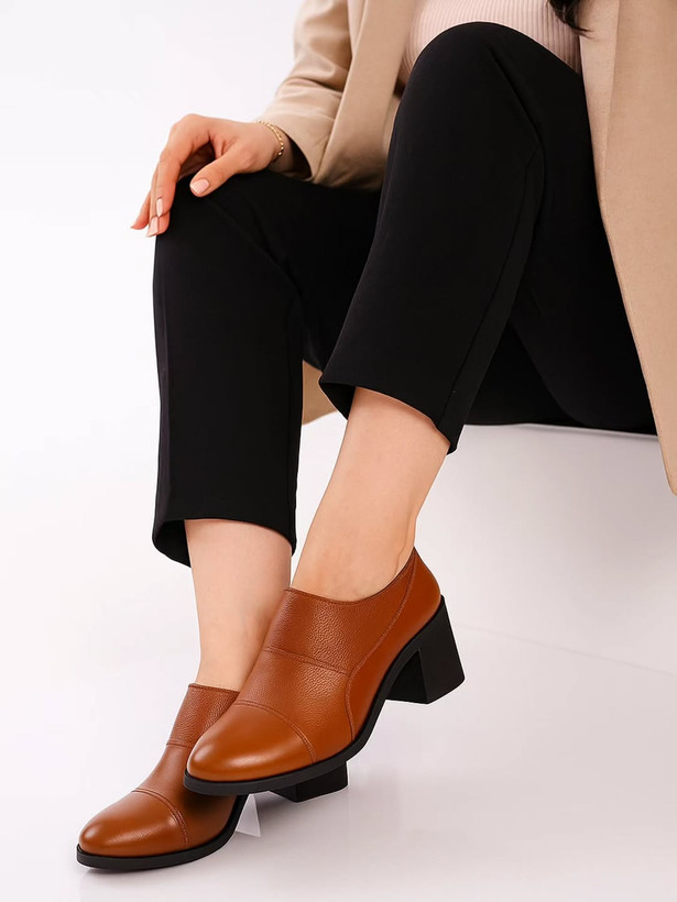 کفش چرمی زنانه با پاشنه ۵ سانتی متری رنگ عسلی