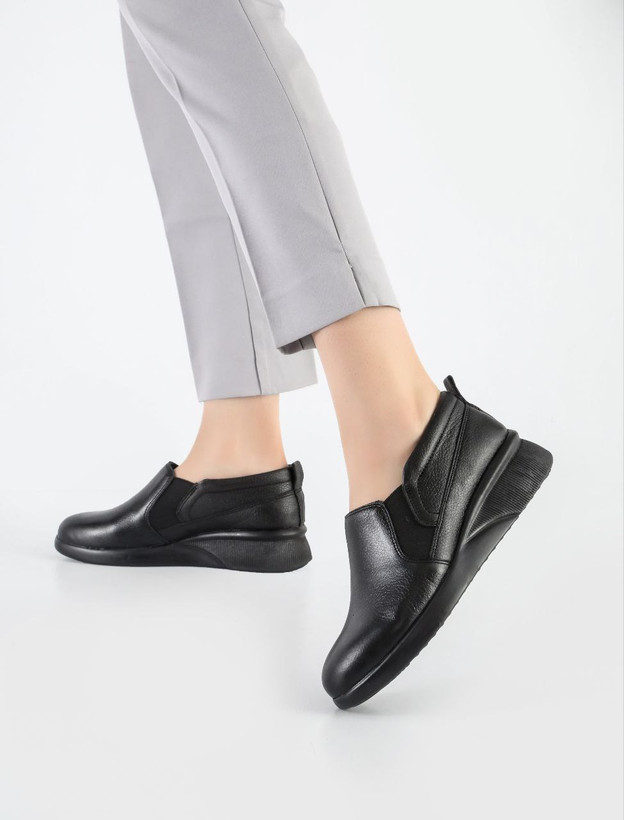 کفش ساقدار مشکی زنانه با طراحی مدرن و ویژگیهای طبی، یکی از بهترین انتخابها برای بانوانی است که در طول روز به دنبال راحتی، استایل و سلامت پا هستند. این مدل با لژ ۳ سانتیمتری و طراحی ارگونومیک، به خوبی از قوس کف پا پشتیبانی میکند و در عین حال ظاهری شیک و رسمی دارد.