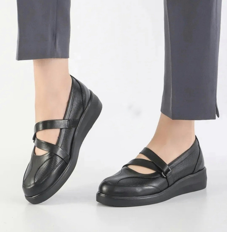 کفش مشکی تمام چرم طبیعی کاملاطبی