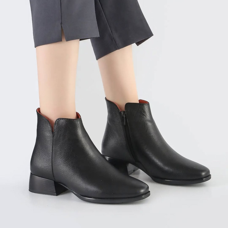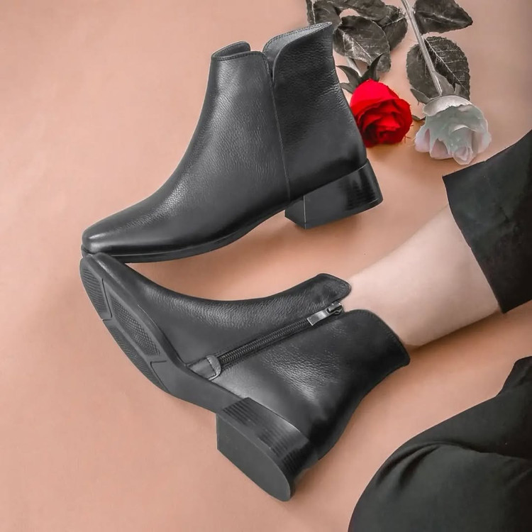 💟بوت تمام چرم ساق کوتاه با یک استایل رسمی پاشنه ۴ سانت