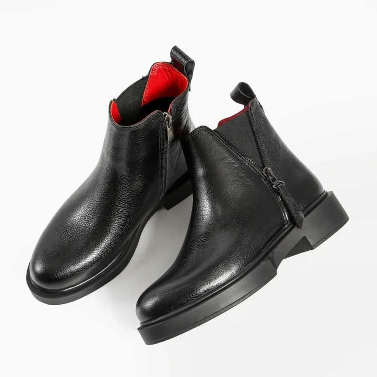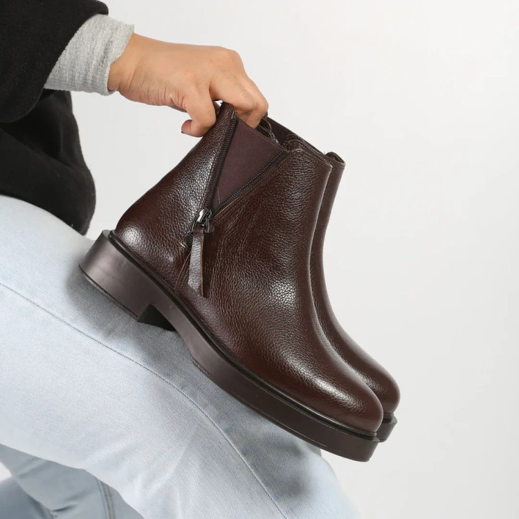 استفاده از چرم باکیفیت و دوخت تمیز، این نیمبوت را به گزینهای ماندگار تبدیل کرده است. زیره مقاوم و لژدار کفش، علاوه بر افزایش ارتفاع استاندارد، چسبندگی مناسب روی سطحهای مختلف ایجاد میکند و مانع لغزش در روزهای بارانی میشود.