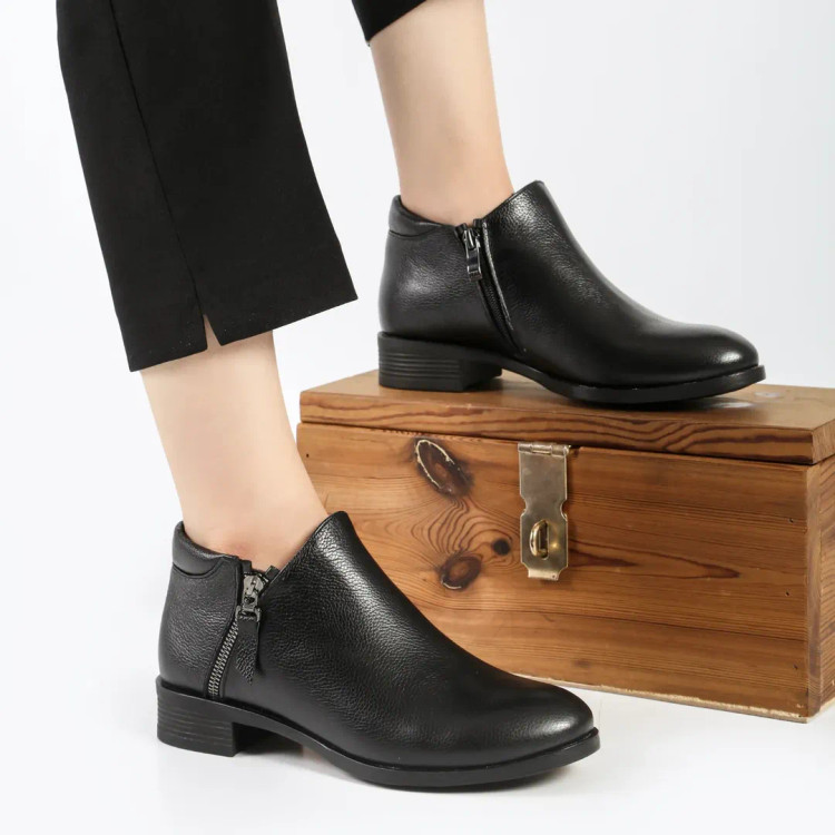 استفاده از چرم باکیفیت و دوخت تمیز، این نیمبوت را به گزینهای ماندگار تبدیل کرده است. زیره مقاوم و لژدار کفش، علاوه بر افزایش ارتفاع استاندارد، چسبندگی مناسب روی سطحهای مختلف ایجاد میکند و مانع لغزش در روزهای بارانی میشود.