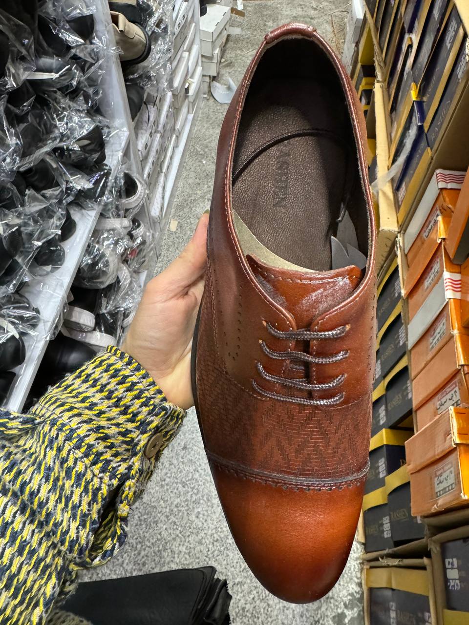کفش طبی تمام چرم طبیعی گاوی مردانه عسلی
