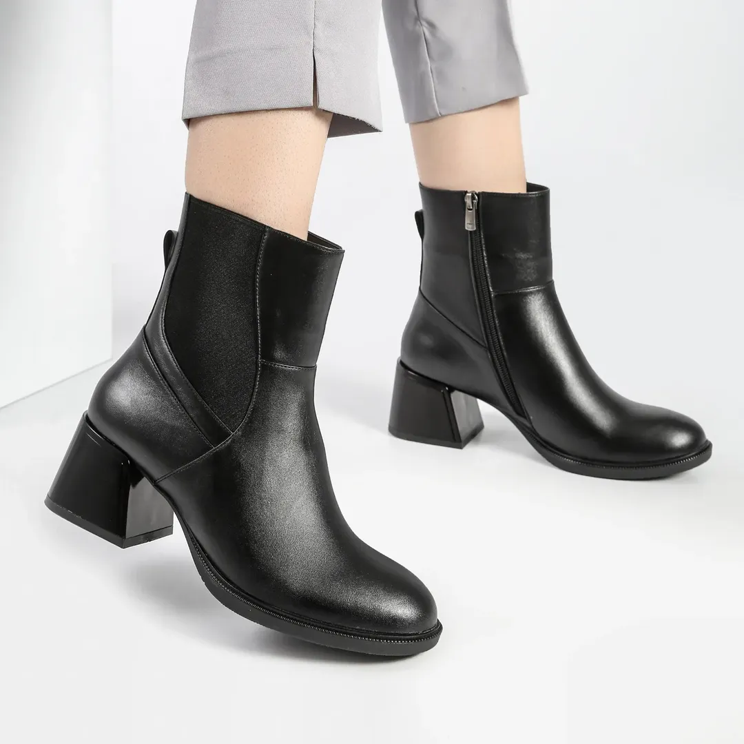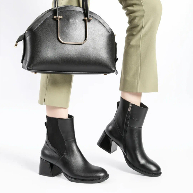 بوت تمام چرم ۵سانت با پاشنه مشکی پیانویی