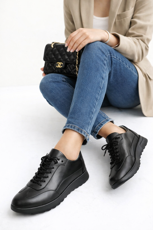 کتونی مشکی تمام چرم طبیعی گاوی درجه یک قبل از ثبت موجودی بگیرید