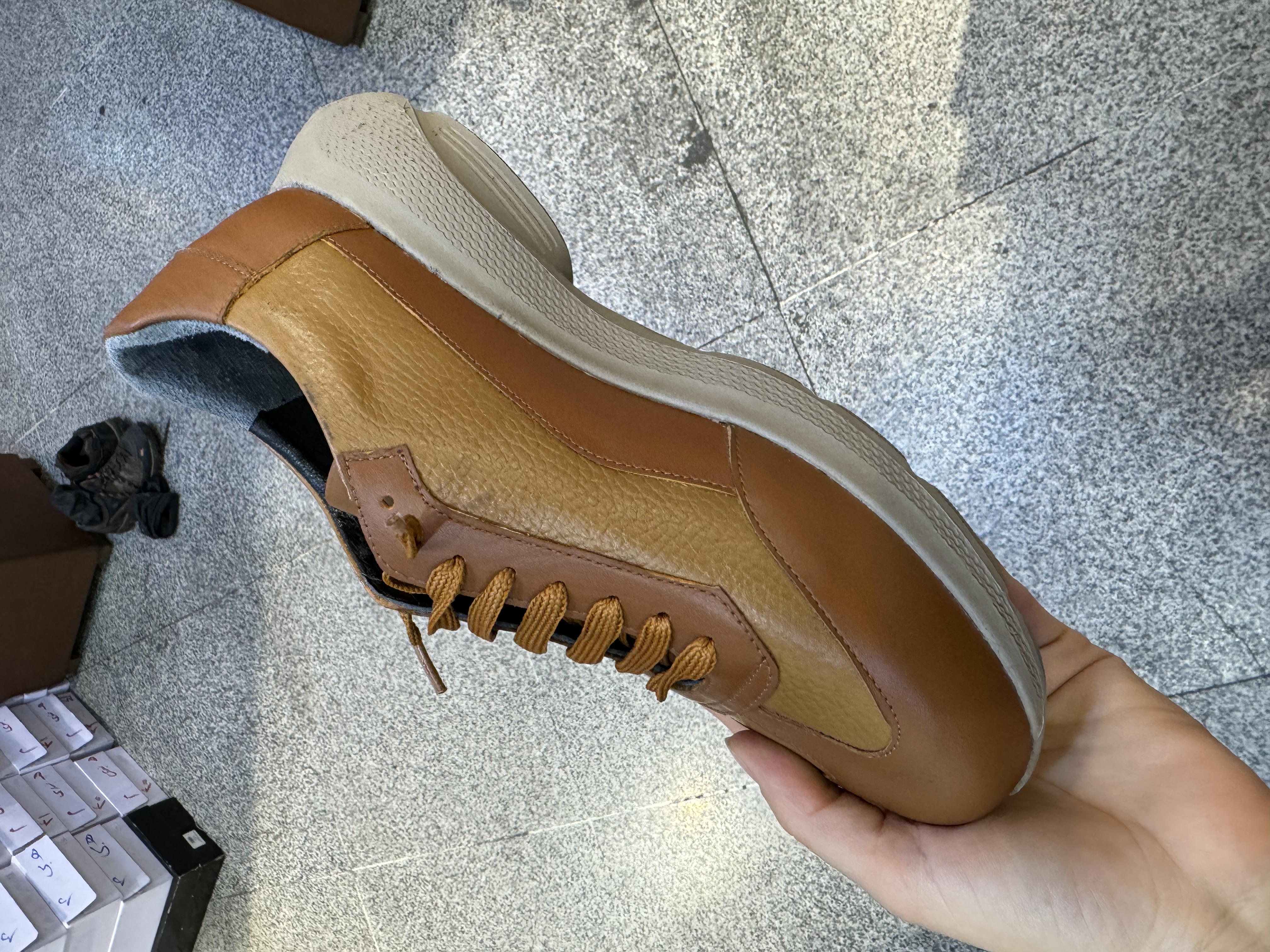 کتونی تمام چرم طبیعی رنگ عسلی