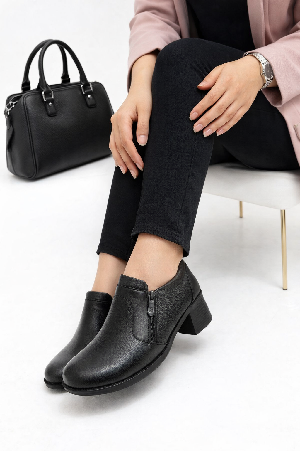 کفش زنانه مشکی، کفش چرم زنانه، ست کیف و کفش، کفش روزمره زنانه، کفش راحت، استایل زنانه، کیف و کفش ست