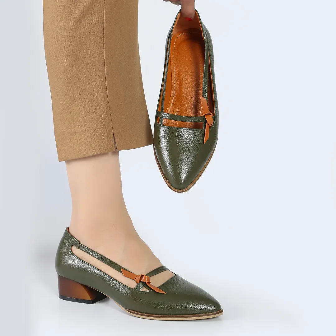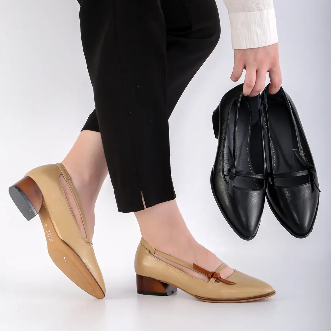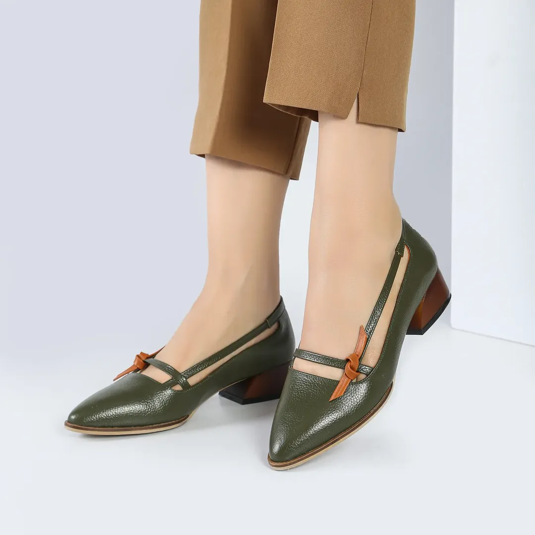 کفش تمام چرم پاشنه ک مدل بسیار زیبا و خاص در رنگهای زیبا و جذاب برای ست های مختلف. پنجه پهن، قالبی راحت، مناسب برای استفاده طولانی. رویه، استر و کفی طبی از بهترین نوع چرم طبیعی گاوی تبریز.