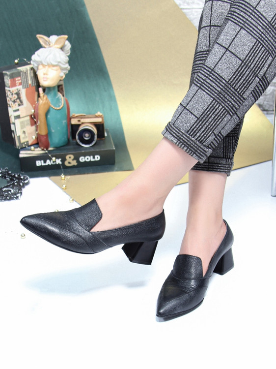 کفش مشکی تمام چرم طبیعی گاوی درجه یک نوک تیز
