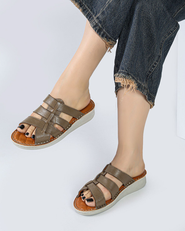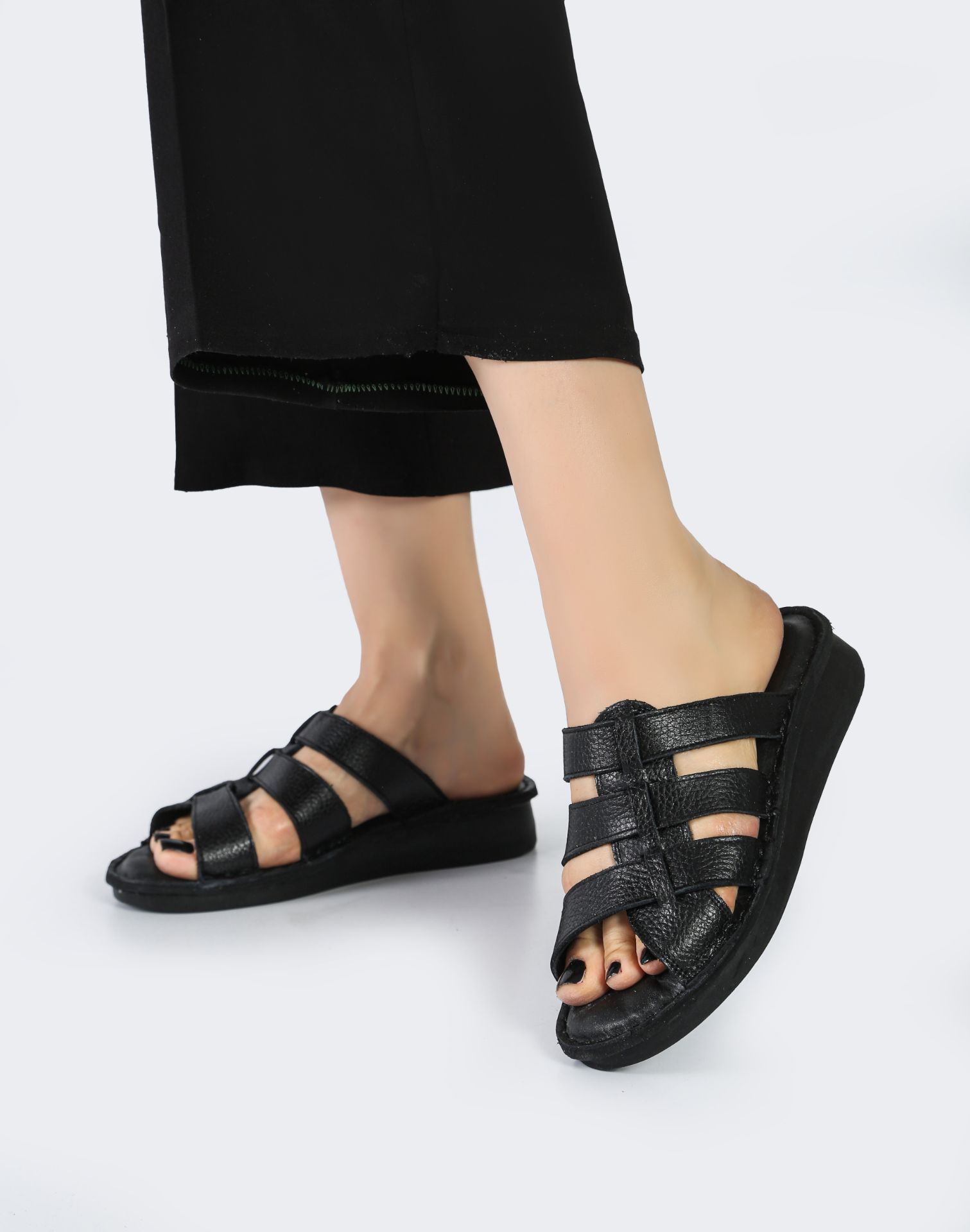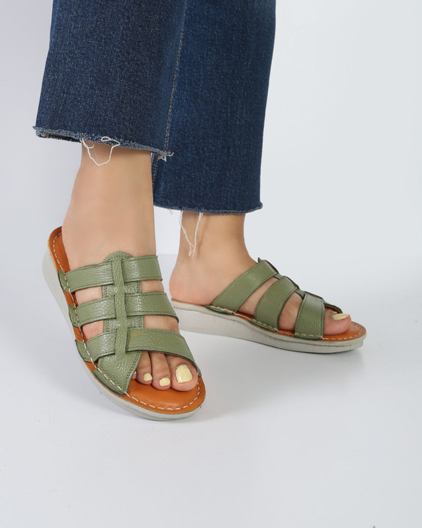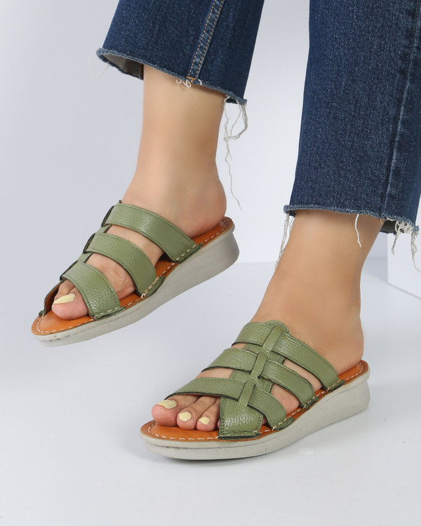 رنگبندی دمپایی تمام چرم طبیعی زنانه ۳۷تا۴۱ مشکی و ویزون و سبز